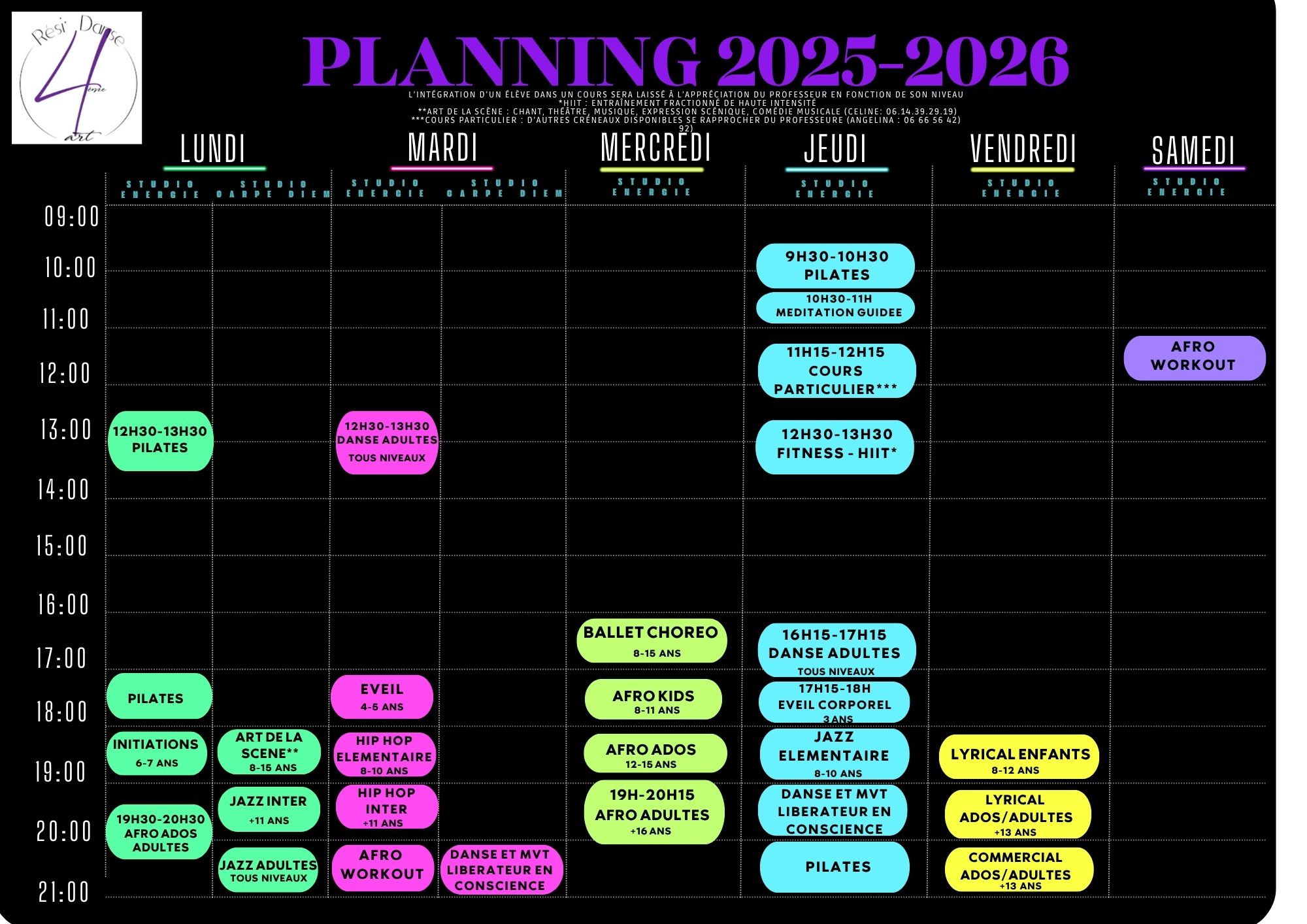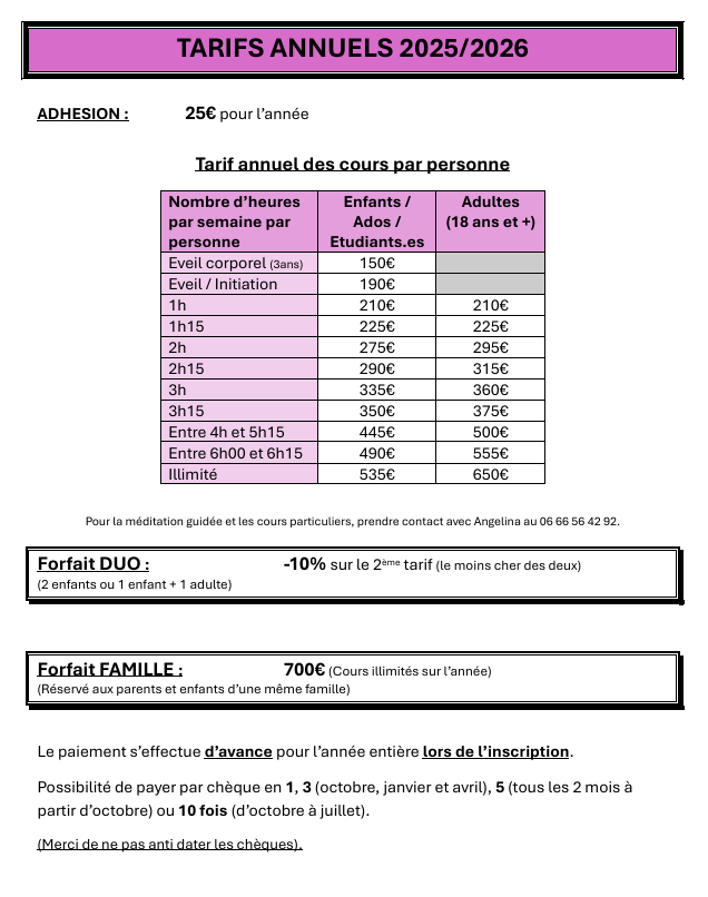 - cours selon les disciplines choisies --> Tarifs 2025-2026